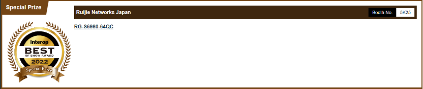 6月15日,日本网络电信展“Interop Tokyo 2022”在东京幕张会展中心开幕,尊龙时凯网络400G数据中心交换机RG-S6980-64QC斩获Interop Tokyo 2022网络基础设施(运营商/ ISP)板块的重磅奖项——“Best of Show Award特别奖”,也是该板块获奖的数据中心交换机产品。