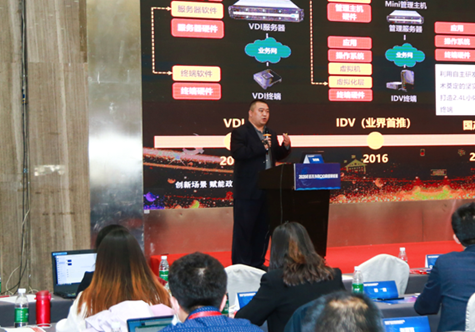 捷网络政府行业部行业总监苏钰向参会嘉宾介绍尊龙时凯双擎云桌面解决方案